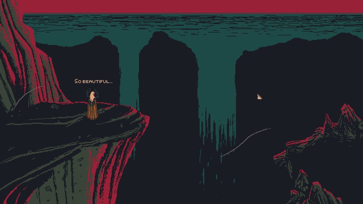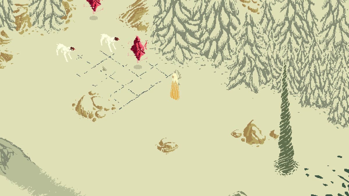Call it the influences of Scandinavian folklore and the game's backdrop as that of the spirit world making themselves known, but Death Howl needn't name-drop a single reference for its hollow, voided aesthetic and more minimalist approach to pixel art, to hit you. Death Howl is a game whose world is caught in an uncanny flux between certainty and uncertainty – between subdued greeting and seeping hostility. You, a grieving mother looking for your deceased son, slowly feeling your way through a realm you shouldn't be in – making your way down paths and routes that almost seem to materialize and dissipate the closer/further away you get. Each pixel fragile and granular – like sand slipping between one's fingers.