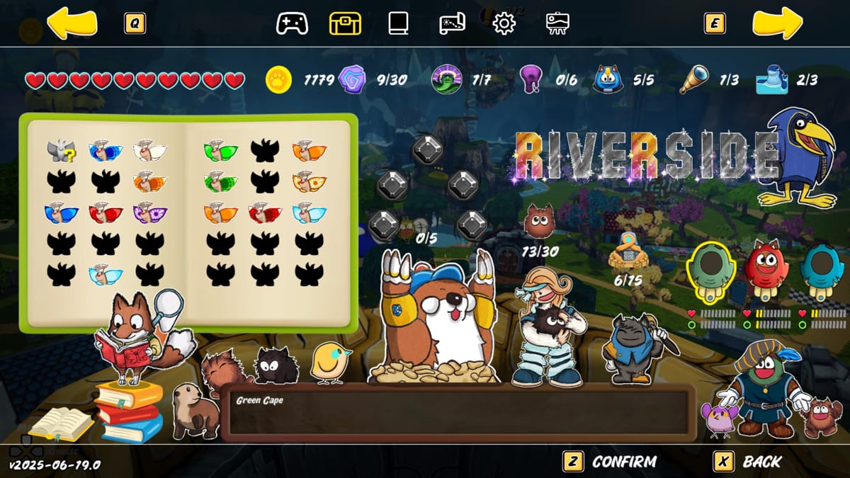 Yet for every spot of potential, Ruffy and the Riverside decides against expanding or exploring this concept. At its worst, incorporating some utterly bizarre and misplaced design choices that only go further at embedding frustration. The biggest culprit is the [granted, entirely optional] means by which one can upgrade your health and stamina meter. A clearly-blatant spot of inspiration taken from The Legend of Zelda's most recent console outings. But rather than simply letting players choose the upgrades they want, are forced to partake in a needless slot machine that not only doesn't guarantee the upgrade desired, but even which cape (of which there are three colours to purchase/upgrade) even gets upgraded.